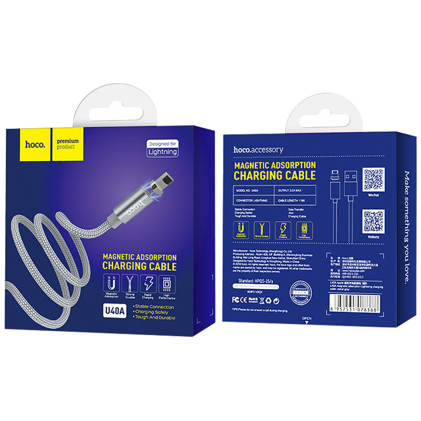 USB kábel iPhone-hoz, fém mágneses, Lightning, 2,0 A