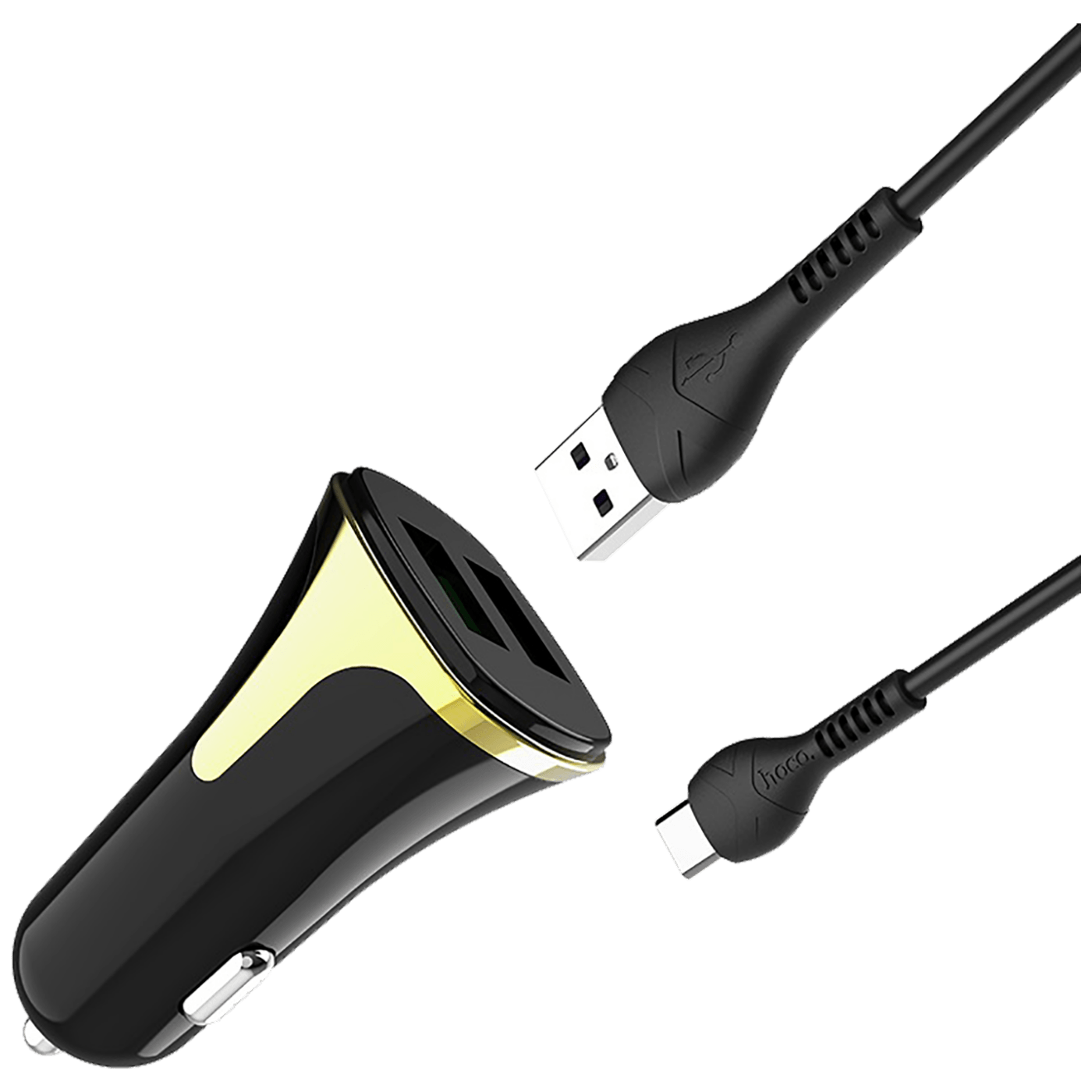 Univerzalni USB Auto punjač sa micro USB kabelom, 1 x USB, 12-24V, 5V / 2.4A, total 17 W / 3.4 A, dužina kabela 1.2 met., automatska zaštita od preopterećenja, dimenzije 55 x 26 mm, za: SmartPhone, MP3 player, PDA, navigaciju...