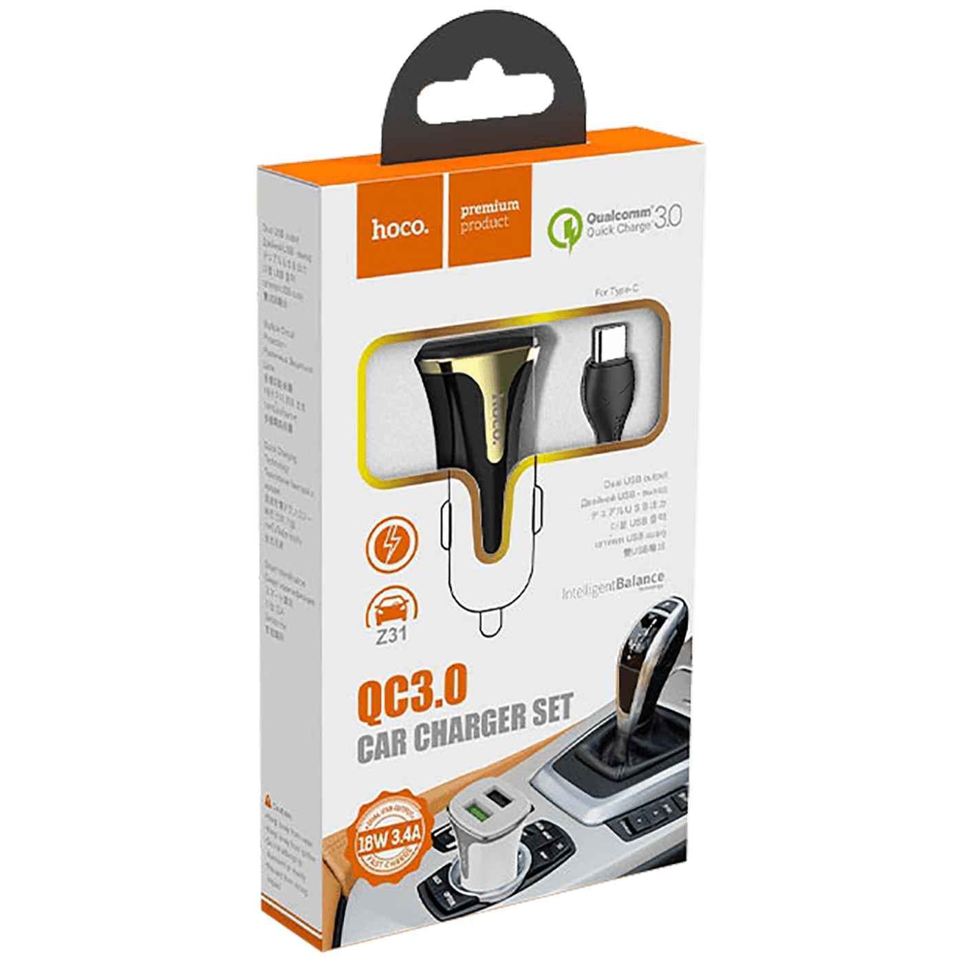 Univerzalni USB auto punjač, brzi punjač standard QC3.0, 2 x USB, ulazni napon 12 - 24 V, izlazni napon 5V / 3.4 A / 18 W max., automatska zaštita od preopterećenja, dužina kabela 1 metar, dimenzije 63 x 31 x 23 mm