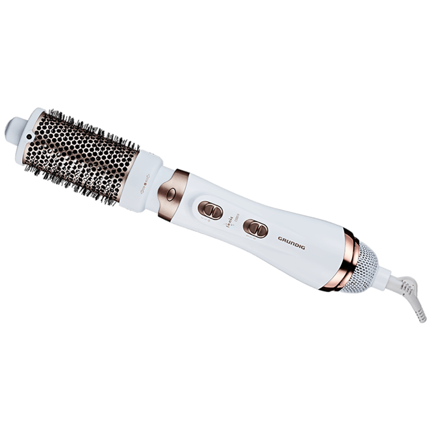 Naš uređaj za oblikovanje volumena i kovrči uvijek će vas iznova inspirirati za stvaranje uzbudljivih frizura. Zahvaljujući ionskoj tehnologiji kosa zadržava prirodnu vlažnost, ne dolazi do stvaranja statičkog elektriciteta, a kosa postaje sjajna i voluminozna. Rezultat je sjajna, nježno hidratizirana i obnovljena kosa. 5 slojeva visokokvalitetnog keramičkog premaza nastavaka za oblikovanje štiti iscrpljenu kosu, aktivira blistavost boje i daje veliki sjaj. Snaga od 1200 vata jamči profesionalne rezultate oblikovanja. 4 nastavka za oblikovanje: četka promjera 50 mm za stvaranje volumena, velikih kovrči i valovite kose, četka promjera 38 mm za stvaranje volumena i umjereno valovite kose, četka promjera 25 mm za stvaranje manjih kovrči i valovite kose, mlaznica za sušenje kose, 2 postavke temperature, 2 postavke protoka zraka i postavka hladnog puhanja za popravljanje i učvršćivanje frizura, kabel duljine 3,0 m s okretnim zglobom, zaštita od pregrijavanja, torbica za pohranu, rad na struju, 220 – 240 V~, 50 Hz