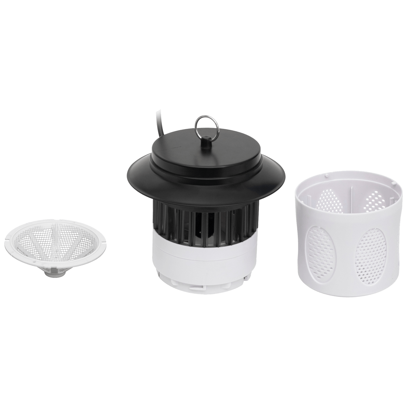 Svjetiljka Protiv Komaraca . Ova zamka radi na principu UV-A svjetlosti kojim privlači insekte osjetljive na svjetlost kao što su: muhe, komarci, moljci. Visokonaponska mrežica strujnim udarom uništava insekte. Specijalna UV-A fluo cijev je potpuno bezopasna za ljude i kućne ljubimce. Spoljna zaštitna mrežica sprečava dodirivanje visokonaponske mrežice. Ova zamka je idealna za uporabu u domovima, vikendicama, terese itd...... Domet do 50m², UV-A lampa 2 x 8W ( T5 F8W BL ), praktični prekidač za uključivanje i isključivanje, posuda za sakupljanje uginulih insekata, dužina napojnog kabela 1 met., napajanje 230V / 50Hz / 23W, dimenzije: 35 x 27.2 x 8.6 cm. Napomena: Ugrađena svjetiljka je dizajnirana za uništavanje insekata, nije pogodno za osvjetljenje prostorije. Zamjenska UV lampa je T5 F8W BL.