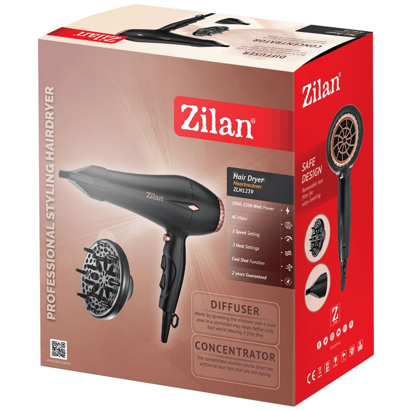 Sušilo za kosu, snaga 1800 - 2200W, 3 postavke brzine, 3 postavke temperature, funkcija hladni zrak, difuzor