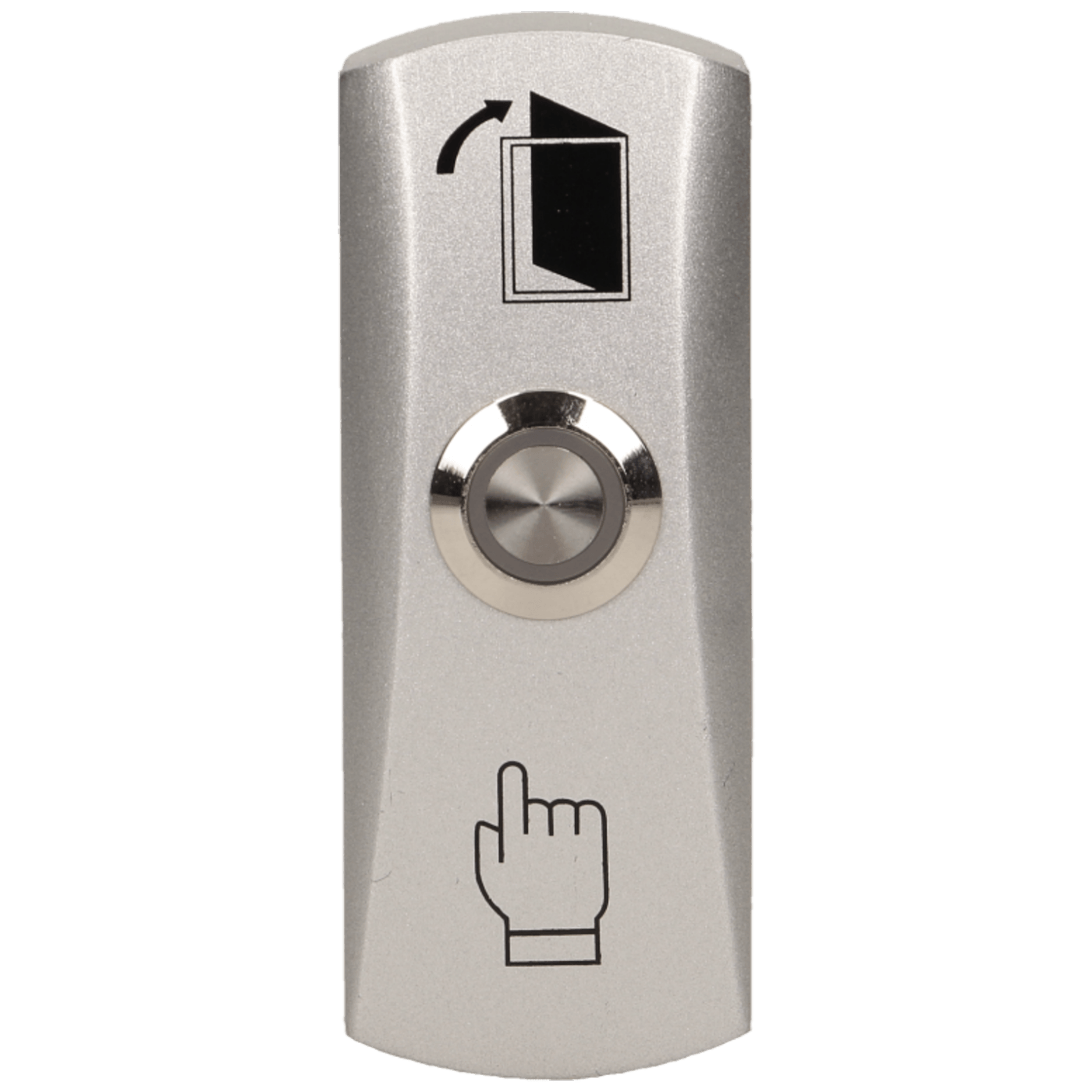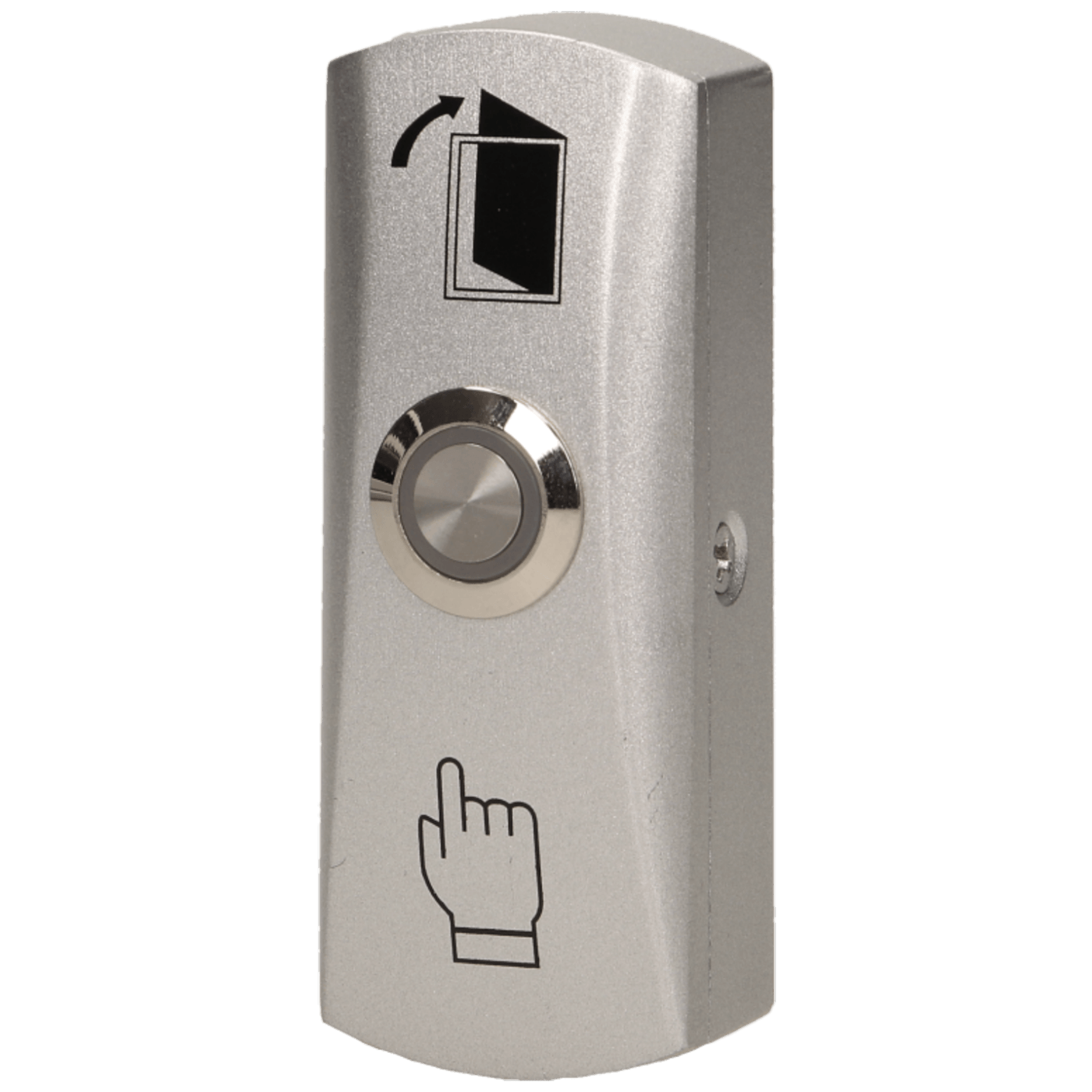 EXIT tipka sa LED pozadinskim osvjetljenjem - Nadgradna montaža - Čvrsto, aluminijsko kućište - Omogućuje otvaranje vrata opremljenih električnim prihvatnikom ( zasunom ) Nominalno napajanje 12V DC, IP20 Dimenzije 85 x 2 mm