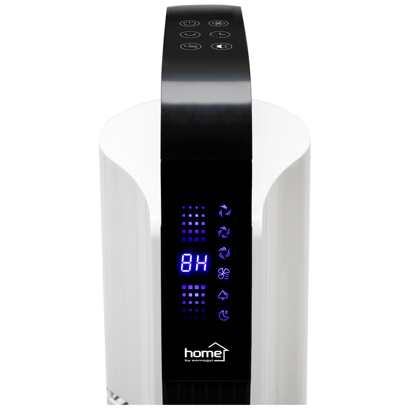Ventilator stupni, rotacioni, efektivan u hlađenju, jednostavan za postavljanje. Zahvaljujući konstrukciji koja štedi prostor, maloj masi, praktičnoj ručki, ventilator se može vrlo brzo premjestiti te je znaći prostorno veoma upotrebljiv. Praktična funkcija timera omogućuje vremenski upravljivu uporabu koja štedi Vaš novac. Uređaj ima tri brzine, oscilirajući je. Kod osciliranja ventilator se neprestano kreće lijevo / desno do 75° . Ove funkcije mogu se podesiti preko daljinskog upravljača ili na samom uređaju preko panela osjetljivog na dodir. Učinkovit, elegantan, dizajniran stupni ventilator je idealan za urede, poslovne prostore, domove....
