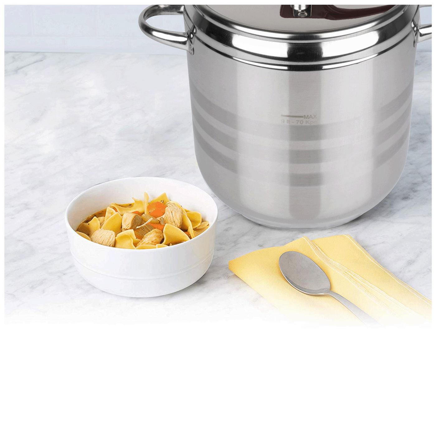 Minőségi 18/10-es rozsdamentes acélból készült, ez az edény tartós és hosszú élettartamú. A háromrétegű alapnak köszönhetően az edény gyorsan felmelegszik és fenntartja a hőt, ami lehetővé teszi, hogy energiát és időt takarítson meg az ételkészítés során.
