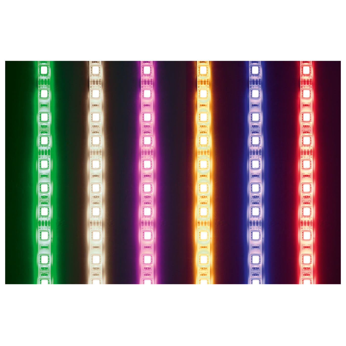 LED traka, RGB ( crvena / plava / zelena ), dužina trake 5 met., izvor svjetlosti 150 LED SMD 5050 ( 30 LED / met. ), 2000 lm ( 200 lm / met. ), 6500K boja svjetlosti, snaga 24W ( 4.8 W / met. ). Podesivi efekti, podesiva svjetlina, promjena boje, napajanje napojni adapter, napajanje daljinskog upravljača 1 x CR2025 dugmasta baterija